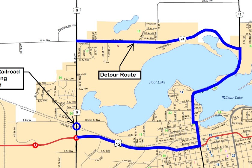 Railroad crossing at Kandiyohi Road 5, north of Highway 12